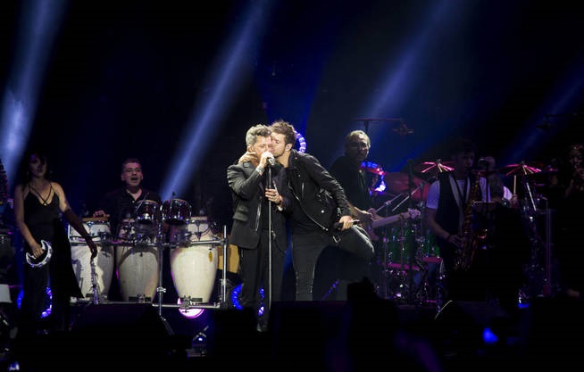De lo mejor, el empeño demostrado precisamente en poner en marcha este complejísimo espectáculo único en el que, además de concitar a tantas estrellas, ha subido al escenario a una banda con cerca de dos decenas de músicos, los de su grupo actual y los que pasearon «Más» hace dos décadas, para colorear cualquier espacio sonoro disponible del recinto con cuerdas, metales, percusión y voces.