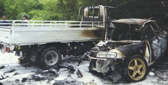 Primero, Komiyama sacó al chofer del coche, que se fracturó una pierna. El vehículo se estaba incendiando.