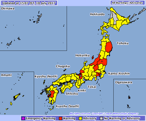 La Agencia Meteorológica también emitió alertas de inundación en varios distritos de Tokio como Bunkyo, Shinagawa y Meguro en el centro de la capital.