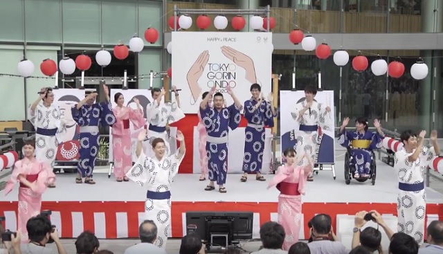 Coincidiendo con los actos para conmemorar la cuenta atrás para los próximos Juegos de Verano de la capital nipona, la organización ha adaptado la letra del «Tokyo Gorin Ondo» -originalmente compuesta para los primeros JJ.OO. en Japón de hace más de medio siglo- y ha creado una coreografía para promocionar el evento.