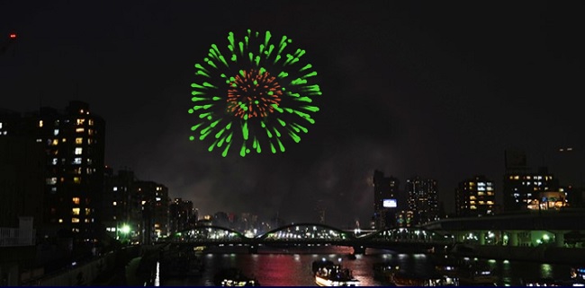 El festival de fuegos artificiales del río Sumida celebró el domingo su 40 aniversario con el lanzamiento de aproximadamente 22.000 objetos pirotécnicos que iluminaron el cielo en Tokio, 2.000 más que en un año año ordinario, destacó Asahi Shimbun.