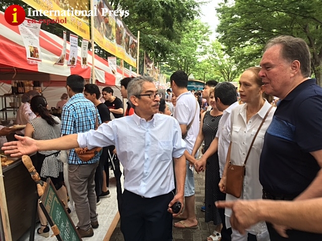El embajador del Perú en Japón, Harold Forsyth, felicitó a la Asociación de Peruanos en Japón (ASPEJA) por la organización de Oishii Perú 2017 y quedó gratamente sorprendido por la cantidad de japoneses y peruanos que se concentraron en el sector de la alameda de Yoyogi en Tokio donde el pasado fin de semana se realizó el festival gastronómico.