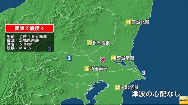 El temblor se produjo a una profundidad de 50 kilómetros y alcanzó el nivel 4 de la escala japonesa de 7, que se centra más en las zonas afectadas, en las prefecturas de Ibaraki, Tochigi, Saitama y Chiba, y se dejó sentir también en la capital del país.