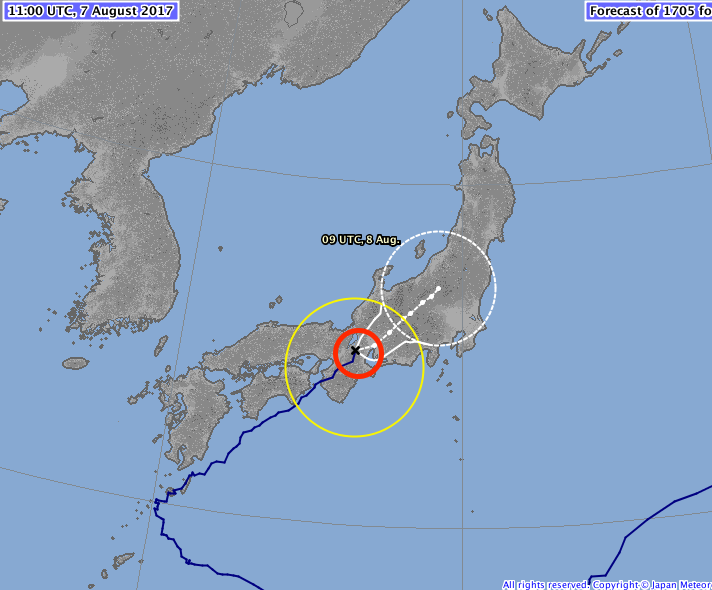 La JMA prevé que el tifón se desplace por el centro de Japón en los próximos días y se aproxime al Área Metropolitana de Tokio.