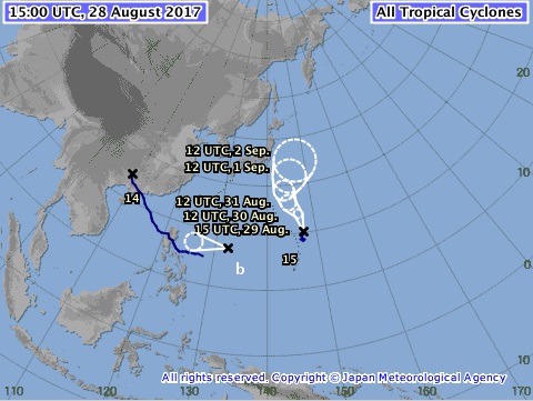 La Agencia Meteorológica de Japón mantiene bajo vigilancia el tifón Nº15 o Sanvu que hoy se formó sobre el Océano Pacífico y que amenaza con golpear las islas más occidentales frente a Tokio entre el 31 de agosto y el 1 de septiembre.