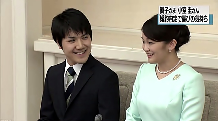 El compromiso de boda de la pareja fue adelantado por los medios nipones a mediados de mayo, y el anuncio oficial estaba previsto para principios de julio, aunque la Agencia de la Casa Imperial decidió posponer el acto debido a las lluvias torrenciales que arrasaron Kyushu, en el sudoeste del país.
