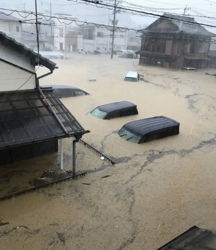 Alrededor de las 16.00 horas, la televisión local emitió imágenes de un estacionamiento de vehículos totalmente inundado en la ciudad de Saiki desde donde un hombre pedía ayuda a través de su cuenta de Twitter. Esta persona llegó sana y salva a su casa.