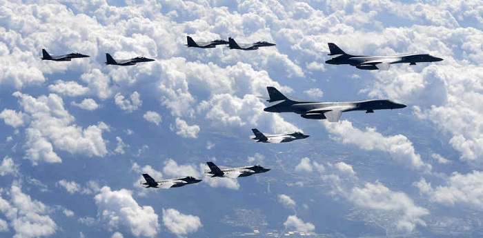 Cuatro cazas F-35B y dos bombarderos estratégicos B-1B estadounidenses realizaron hoy un simulacro de bombardeo cerca de Corea del Norte en respuesta al lanzamiento de un misil de alcance medio realizado el pasado viernes por el régimen de Pyongyang.