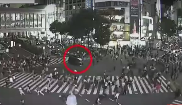 El 25 de septiembre, poco antes de las 10 de la noche, un hombre al volante de una van negra se pasó un semáforo en rojo y atravesó el famoso cruce de Shibuya que en ese momento estaba lleno de peatones caminando.