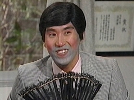 Con su maquillaje característico, mejillas rosadas y una incipiente barba azul, el personaje interpretado por el comediante Takaaki Ishibashi era objeto de burlas de otros que le decían cosas como «Eres un homo, ¿verdad?».