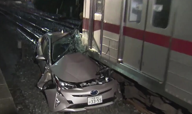 La imprudencia de un automovilista casi desata una tragedia en Itabashi, Tokio, donde un tren se estrelló contra un vehículo en un cruce ferroviario.