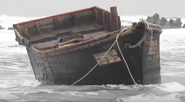 La semana pasada, una embarcación de madera con ocho personas en ella llegó a las costas de Akita.