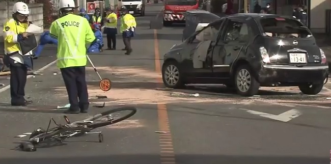 Kiyokatsu Kawabata, un hombre de 85 años, atropelló a las dos chicas, de 16 y 18 años, mientras se dirigían en bicicleta a su escuela. Las dos quedaron inconscientes tras los impactos.