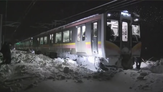 Aproximadamente 600 pasajeros quedaron varados el jueves por la noche en un tren que se vio forzado a detenerse debido a las fuertes nevadas en la prefectura de Niigata.