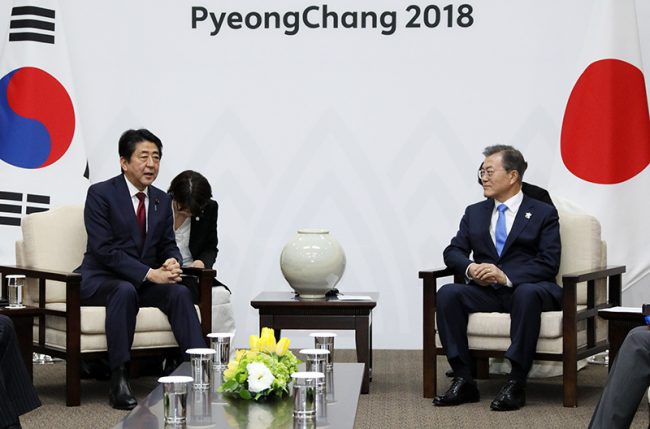 Abe visitó Corea del Sur para asistir a la ceremonia de inauguración de los Juegos Olímpicos de Pyeongchang.
