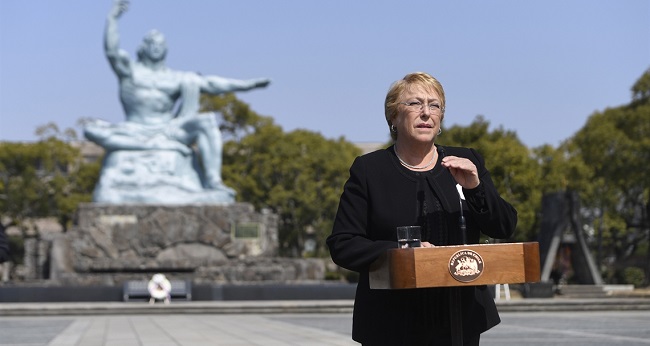 Bachelet se desplazó a esta localidad del sudoeste del país asiático para visitar el Museo de la Bomba Atómica, la zona del hipocentro de la explosión nuclear, y depositar una ofrenda floral en la Estatua de la Paz, dedicada a las decenas de miles de víctimas del ataque nuclear ejecutado en 1945.
