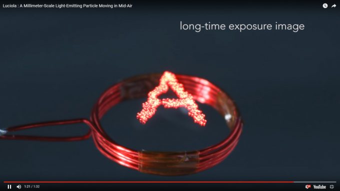 A pesar de su minúsculo tamaño “Luciola” se mueve gracias a la potencia de 285 micro parlantes que emiten ondas ultrasónicas que sostienen la luz, y tienen una frecuencia inaudible para el oído humano, lo que le permite operar en aparente silencio total.