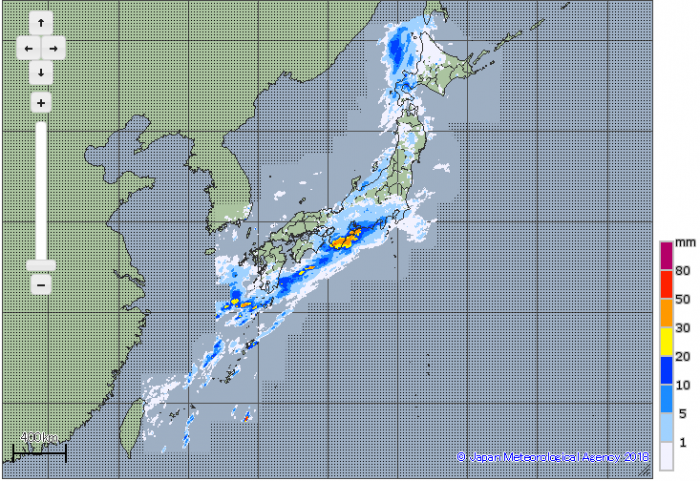 Una agresiva lluvia cae a esta hora en una extensa área de Japón que se extiende desde la Kyushu por el sur hasta Kanto por el centro, e incluso en partes de Hokkaido en el extremos norte.