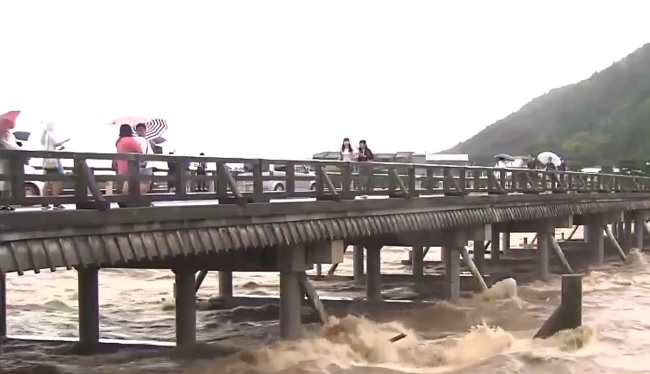 En la ciudad de Kioto, un aumento en el nivel de las aguas del río Kamo llevó a las autoridades a prohibir que las personas ingresen a la rambla junto al río, uno de los lugares turísticos de la ciudad. Además, se vetó el uso de un puente sobre el río Katsura en Arashiyama, otra conocida atracción turística de la ciudad.