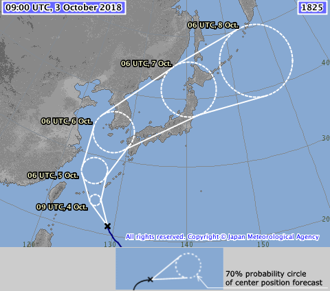 Un nuevo y poderoso tifón se acerca al sur de Japón. Es el Kong-rey, el tifón número 25, que se hará sentir en Okinawa desde este jueves 4 por la tarde y recorrerá todo el país sobre la costa del Mar de Japón hasta llegar a Hokkaido, según la Agencia Meteorológica.