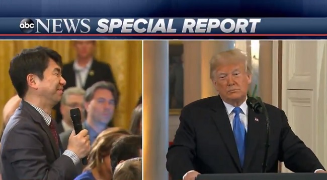 Japan Times revela que un periodista japonés se puso de pie para hacerle una pregunta a Trump. Este, de manera brusca y desdeñosa, lo interrumpió y le preguntó de dónde era. Cuando el hombre respondió Japón, el presidente estadounidense le dijo: “Saluda a Shinzo (Abe)».