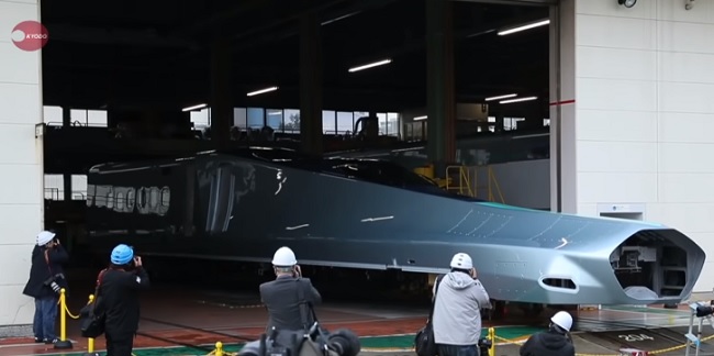 El tren de diez vagones, presentado ante los medios, se está fabricando en la planta de Kawasaki Heavy Industries en Kobe y estará completado en mayo, reveló Kyodo.