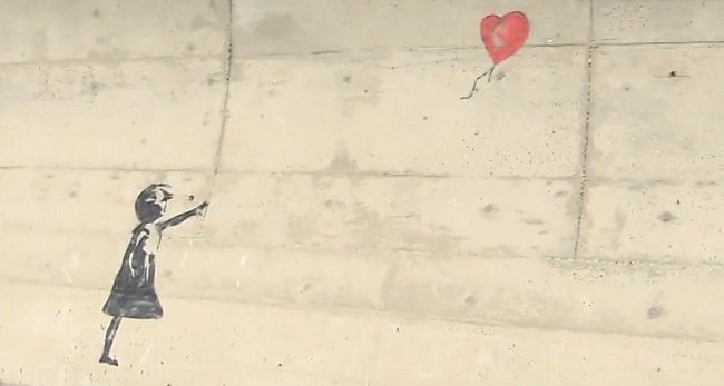 Primero fue en Tokio, ahora en la prefectura de Chiba. En un muro de la ciudad de Kujukuri se encontró un grafiti que se asemeja a “Niña con globo”, la popular obra del artista británico Bansky.