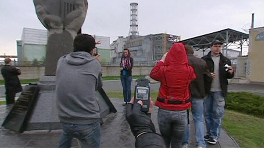 Los turistas presentaron sus respetos frente a un monumento conmemorativo de las víctimas. A medida que pasaban por una zona peligrosa en su vehículo, podían ver a lo lejos los tubos de escape y las grúas de la planta nuclear. Los dosímetros empezaron a hacer ruido cuando midieron más de 1 microsievert por hora, lo que provocó que algunas personas parecieran serias.