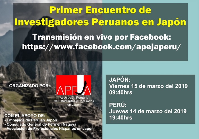 Este evento es organizado por la Asociación Peruana de Estudiantes y Egresados en Japón (APEJA) para divulgar «los proyectos de vanguardia que jóvenes investigadores peruanos» realizan en este país, informó Daniel Saucedo Segami, vicepresidente de la institución.