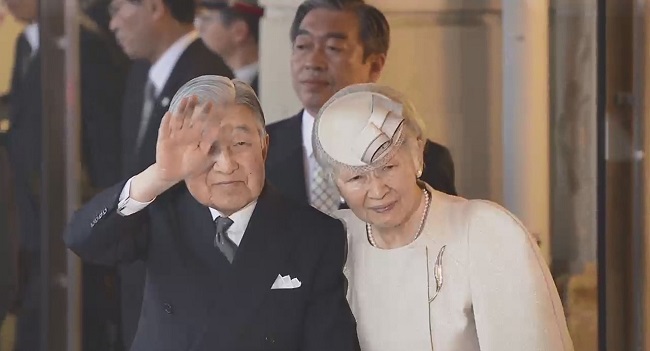 Akihito, que estuvo acompañado por la emperatriz Michiko, abdicará el 30 de abril.