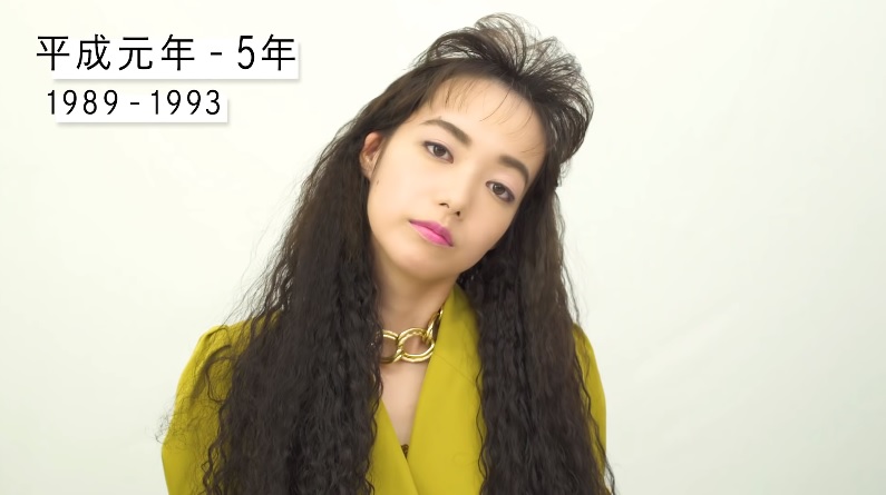 Divididos en seis bloques de cinco años, revela el sitio SoraNews24, Shiseido comienza con el periodo 1989-93, en los estertores de la economía de burbuja, etapa caracterizada por los flequillos levantados y las cejas marcadas.