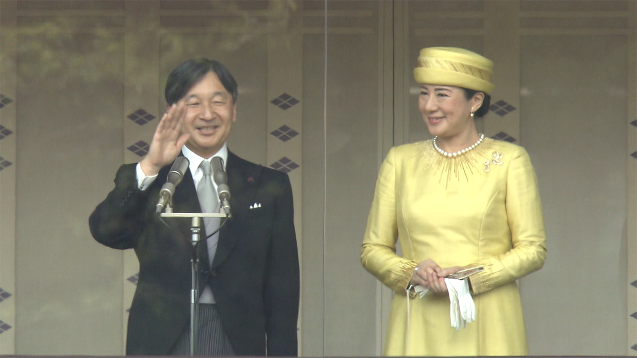 El emperador saludó a las decenas de miles de personas que se congregaron el sábado en el Palacio Imperial de Tokio.