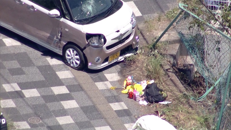 Dos automóviles se estrellaron en una calle de la ciudad de Otsu y como consecuencia del choque uno de los vehículos salió impulsado hacia un grupo de 13 niños de una guardería y tres profesores. Además de las víctimas mortales, los peatones resultaron heridos.