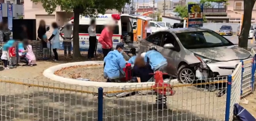 Un testigo vio el accidente y relató a la NHK cómo ocurrió: el coche estaba en un estacionamiento y antes de que la barrera se levantara para que pudiera salir, de pronto aceleró, rompió una cerca y se metió en el parque donde estaban los niños.