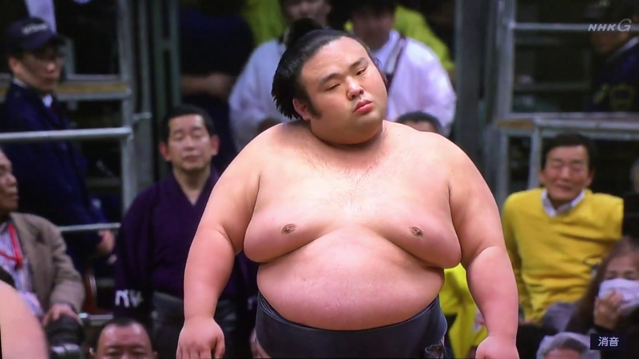 El komusubi Aoiyama abofeteó a Takakeisho, quien estaba haciendo su debut como ozeki en el torneo en el Ryogoku Kokugikan de Tokio, el día 8.