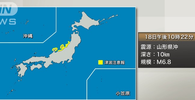 La Agencia Meteorológica de Japón advirtió de tsunamis de hasta un metro de altura en las zonas costeras de las prefecturas de Yamagata, Niigata e Ishikawa tras el terremoto de magnitud 6,8 que golpeó a Japón el martes en la noche.