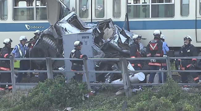 Un tren se descarriló tras estrellarse contra un automóvi atascado en un paso a nivel en Atsugi, prefectura de Kanagawa, informó Kyodo.