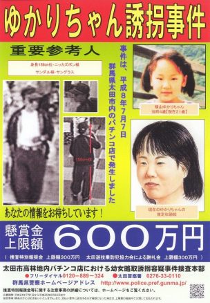 El 7 de julio de 1996, Yukari Yokoyama, una niña de 4 años, fue vista por última vez en un pachinko en la ciudad de Ota, prefectura de Gunma. La niña acompañaba a su papá, que en algún momento la perdió de vista. 23 años después, el padre sigue buscándola.