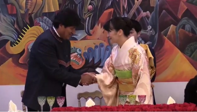 La sobrina del emperador de Japón visitó al presidente de Bolivia, Evo Morales.