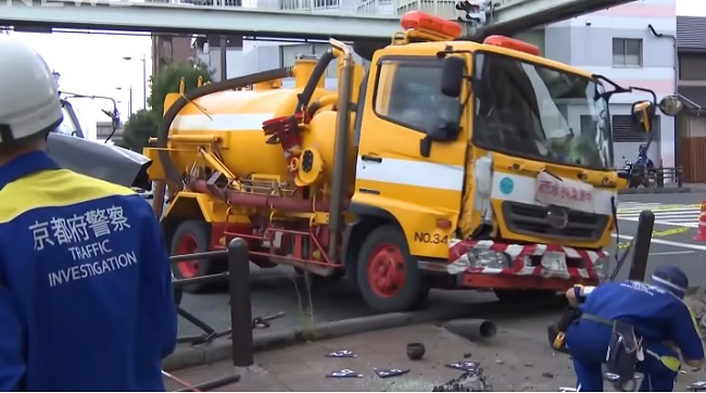 Un choque entre un camión barredor y un taxi en Kioto causó la muerte de una persona. Además, seis resultaron heridas.