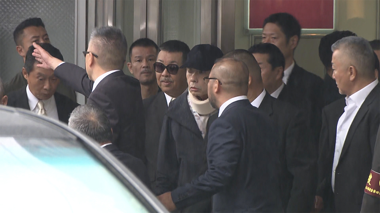 Con una gorra negra y un collarín, el número 2 de Yamaguchi-gumi, Kiyoshi Takayama, fue grabado por los medios entrando a la estación de Shinagawa el viernes alrededor de las 7 a. m.