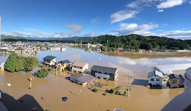 El río se había desbordado por las torrenciales lluvias causadas por el tifón Hagibis. Los ancianos estaban en peligro en su propia casa. Había comenzado la inundación.