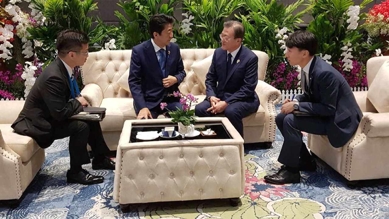 El lunes, el primer ministro de Japón, Shinzo Abe, y el presidente de Corea del Sur, Moon Jae-in, sostuvieron una breve reunión en Tailandia, donde se realizó una cumbre de países asiáticos.