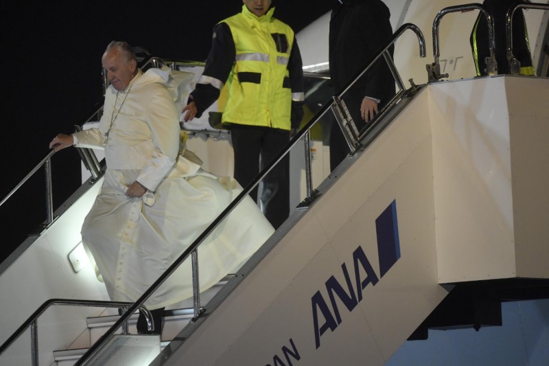 El Papa Francisco llegó a Japón esta tarde, poco después de las 17.30hrs procedente de Tailandia, y fue recibido por funcionarios del gobierno y de la Iglesia Católica en el aeropuerto de Haneda. Su llegada marca la primera visita de un Sumo Pontífice en 38 años.