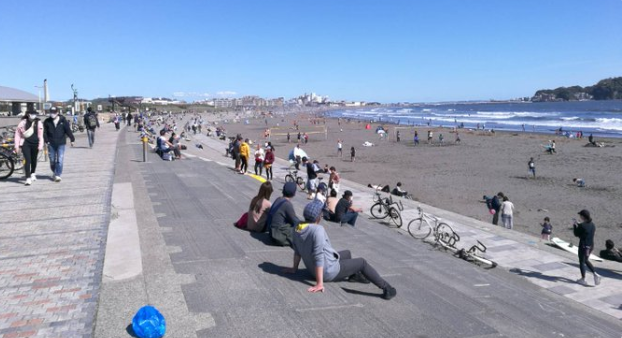 A pesar del estado de emergencia en todo Japón, muchas personas han salido a pasear hacia el área de Shonan en Kanagawa en los fines de semana para aprovechar el sol y el buen clima ocasionando un gran tráfico en el área costera.