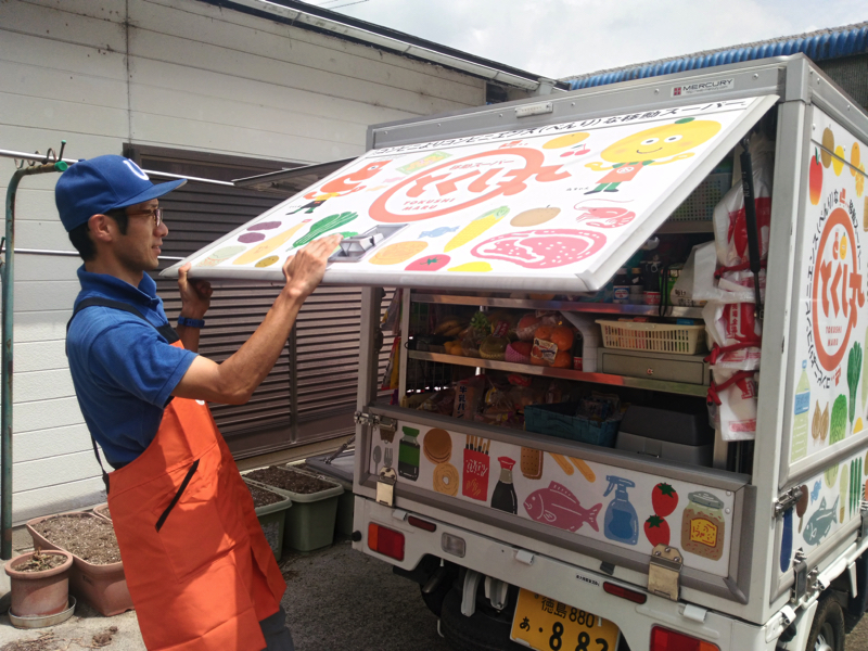 Los camioncitos de Tokushimaru se han vuelto muy populares en varias partes del país. Son capaces de llevar hasta 400 productos que van desde sashimi, carne, verduras y frutas frescas hasta pan, dulces y papel higiénico.