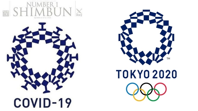 El diseño de la portada de Number 1 Shimbun, revista del FCCJ, utiliza como base el emblema de Tokio 2020 e inserta en su círculo exterior las «coronas» que identifican al virus COVID-19.