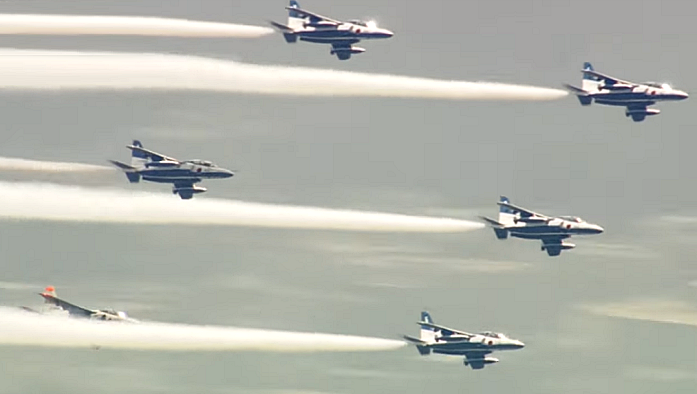 Durante el espectáculo de aproximadamente 20 minutos, desde las 12:40 horas, seis de los aviones de combate del equipo soltaron humo blanco y pasaron sobre las áreas del centro de la capital japonesa dos veces trazando una figura ocho. También volaron sobre algunos de los hospitales que están tratando a pacientes con coronavirus.