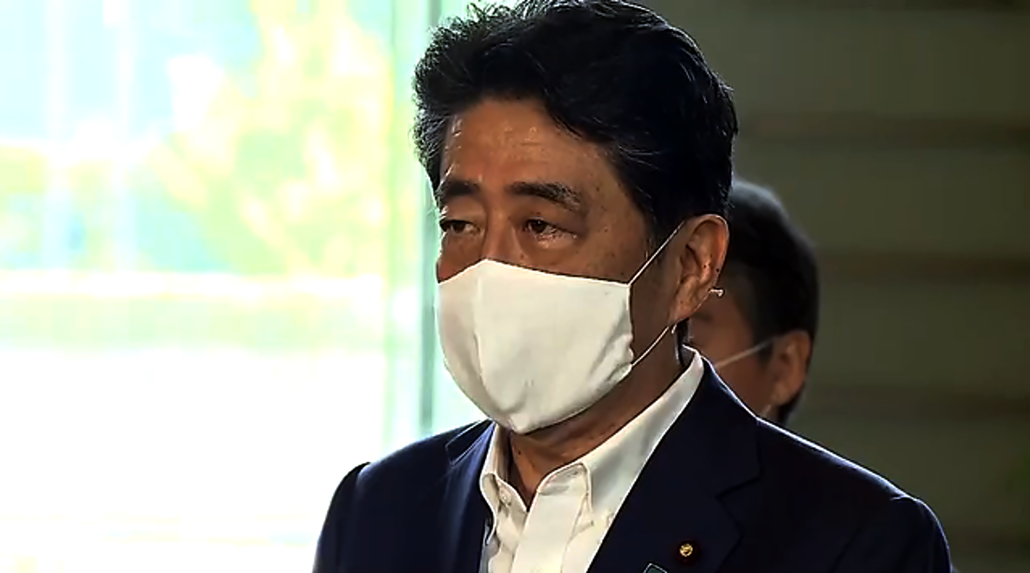 El primer ministro Shinzo Abe dejó de usar exclusivamente la mascarilla de tela distribuida y promocionada por el gobierno y el sábado apareció en público por primera vez sin ella desde abril.