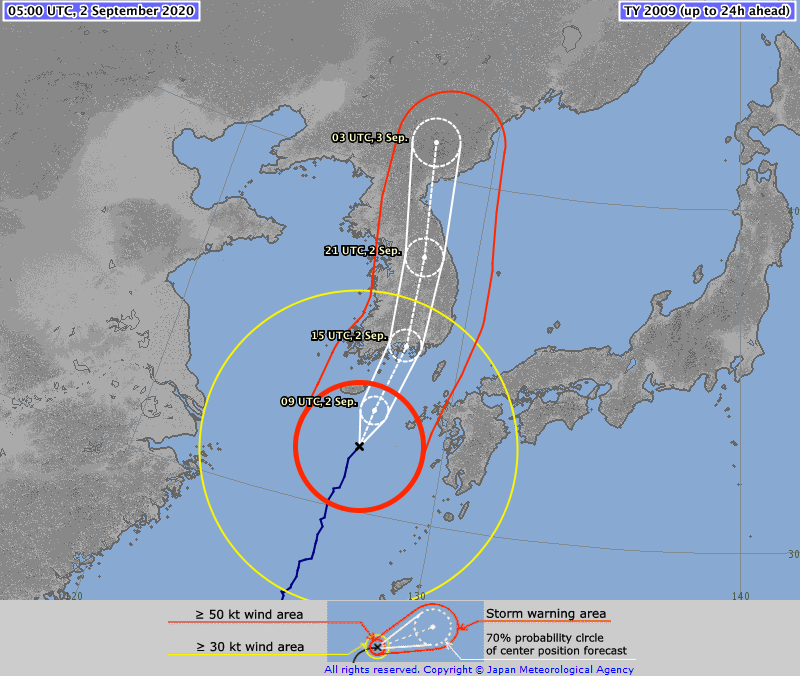 Entre tanto, la Agencia Meteorológica anunció que esta madrugada, cerca de la isla de Ogasawara en el Pacífico, se formó el tifón Nº10 o Haishen, cuya trayectoria golpearía directamente las regiones Kyushu y Shikoku entre los próximos 6 y 7 de septiembre.